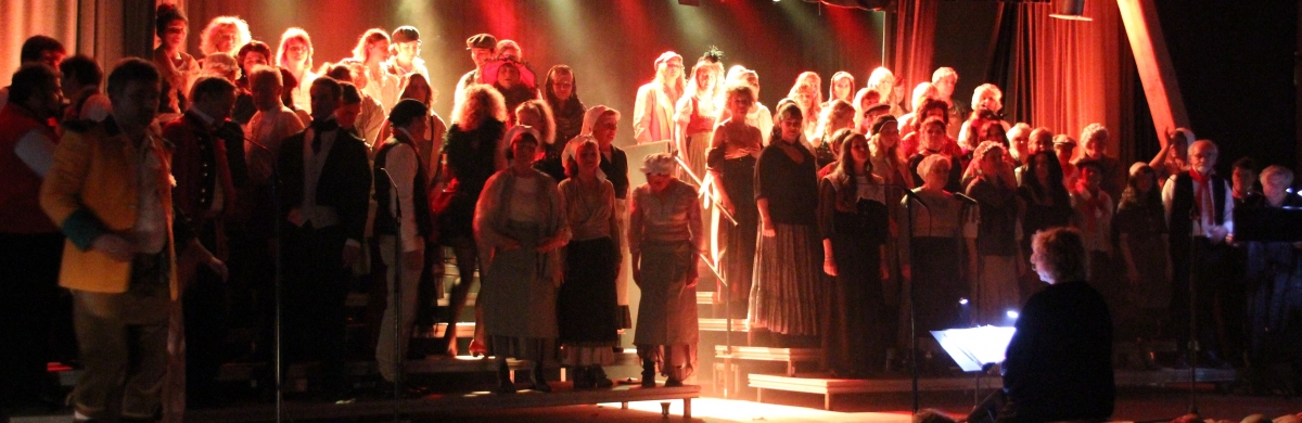 In der für den Chor bearbeiteten Inszenierung hat Anne Drechsel für jedes Chormitglied eine eigene Rolle vorgesehen. Mehr als 70 Sänger und Sängerinnen in zeitgenössischen Kostümen entführen das Publikum mit dieser grandiosen, mitreißenden Musik in das Paris des 19. Jahrhunderts.